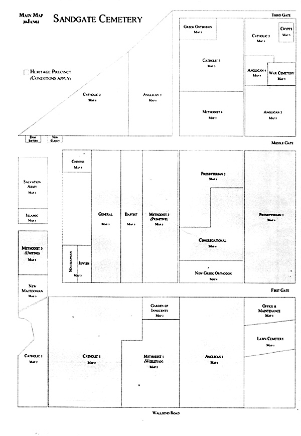 Layout diagram - Sandgate Cemetery, Newcastle NSW